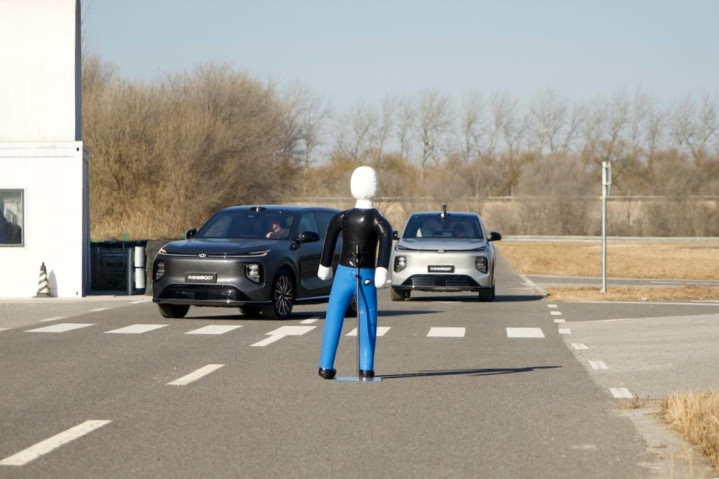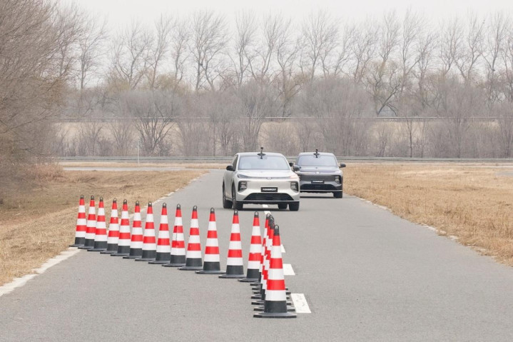「消失的TA」测试模拟高速行驶中,前车突然变道后暴露前方静止障碍的极端场景,主要验证车辆紧急避障(AES)功能的响应速度与操作精度。测试中,两辆车在同一车道以相同速度行驶,前方车辆在接近模拟障碍时突然变道,后方测试车辆不进行任何人为干预,分别以60km/h、70km/h、80km/h的速度通过测试。