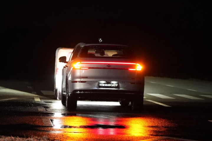 在夜间逆光场景中,长安启源Q07在各速度下均成功规避障碍,根据不同速度合理触发AEB或AES功能;夜间雨天工况下,尽管路面附着力下降,但车辆仍实现了本次测试的全速度层级的安全刹停。强光干扰和雨天湿滑路面均会影响车辆感知精度与制动效果,而测试结果表明,其主动安全系统能够适应这些极端气候条件,为全天候行车提供稳定安全保障。